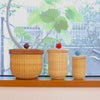 取っ手をレザーに変えるだけでおしゃれなバスケットに早変わり。