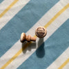 The Nantucket basket design on this pull knob is scrimshaw, a traditional art that originated on whaling ships during the whaling era. Patterns were carved into the teeth of whales using sea knives and ash from boiling down whale blubber was used as ink.