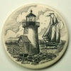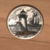アクリル製。ナンタケット、アメリカ伝統のスクリムシャウで描かれた各柄のプレートは、バスケットの蓋部分や、トレイの底などに飾られます。ナンタケットのブラントポイント灯台と船が描かれています。