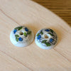 ブルーベリースクリムシャウ ドームナンタケットバスケットの伝統としてハンドルの外側にデコレーションとして付けられるものに、ノブとドームがあります。ノブは立体的なナンタケット独自のデザインです。スクリムシャウは、捕鯨時代の帆船の中でつくり始められた伝統です。クジラを煮詰める窯の煤がインクに使われ、クジラの歯にシーナイフで削らえた絵柄を浮き立たせます。地元ナンタケットで多く採れるブルーベリーがスクリムシャウされた可愛らしいドームです。Pair販売