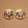 Blueberry scrimshaw. Nantucket baskets are traditionally adorned with decorative knobs and domes on the outside of the handle. The knobs are 3D designs unique to Nantucket. Scrimshaw is a traditional art that originated on whaling ships. Patterns were carved into the teeth of whales using sea knives and ash from boiling down whale blubber was used as ink. Blueberries are often picked locally in Nantucket and here feature as beautiful scrimshaw domes. Sold as a pair